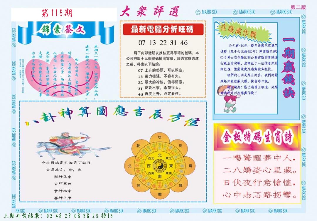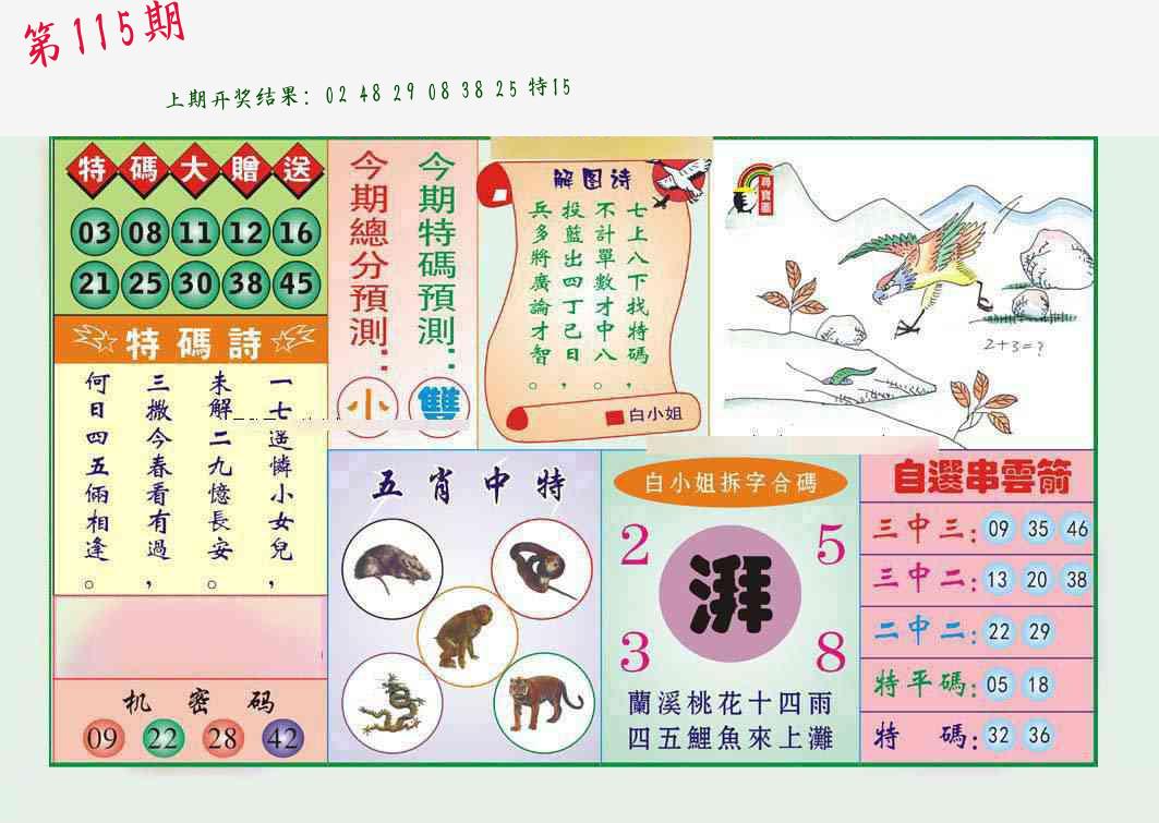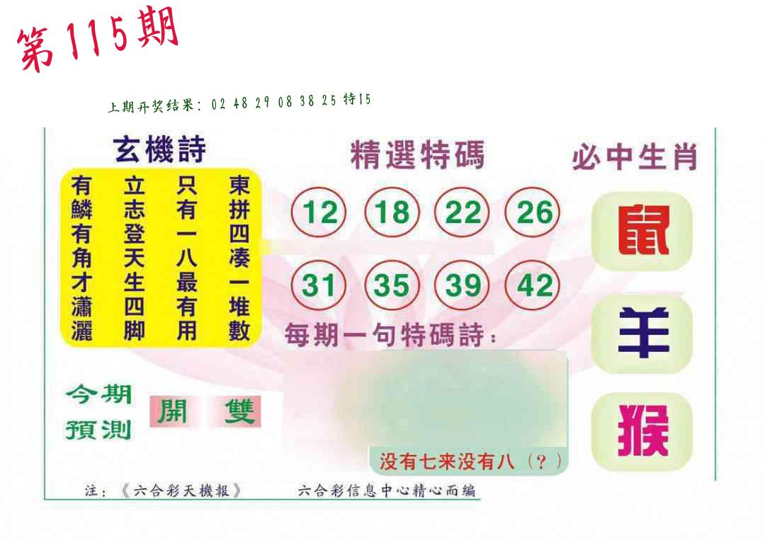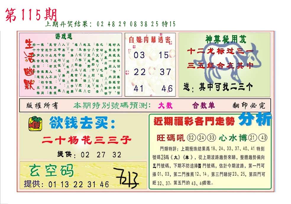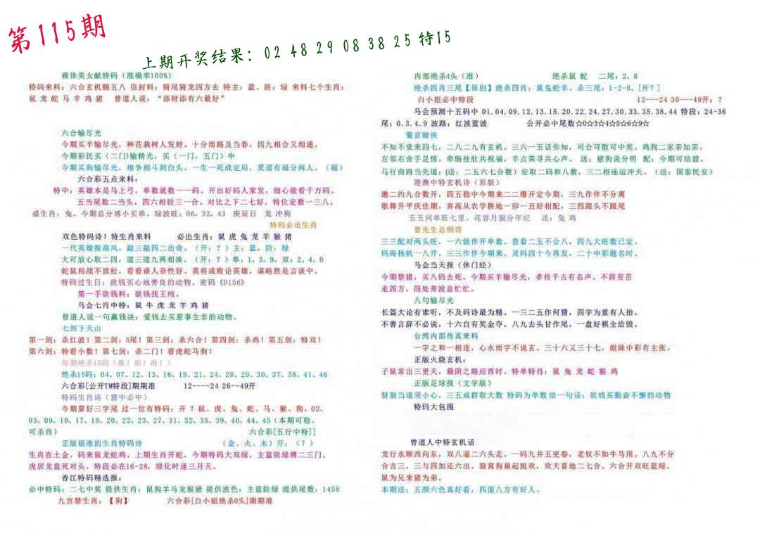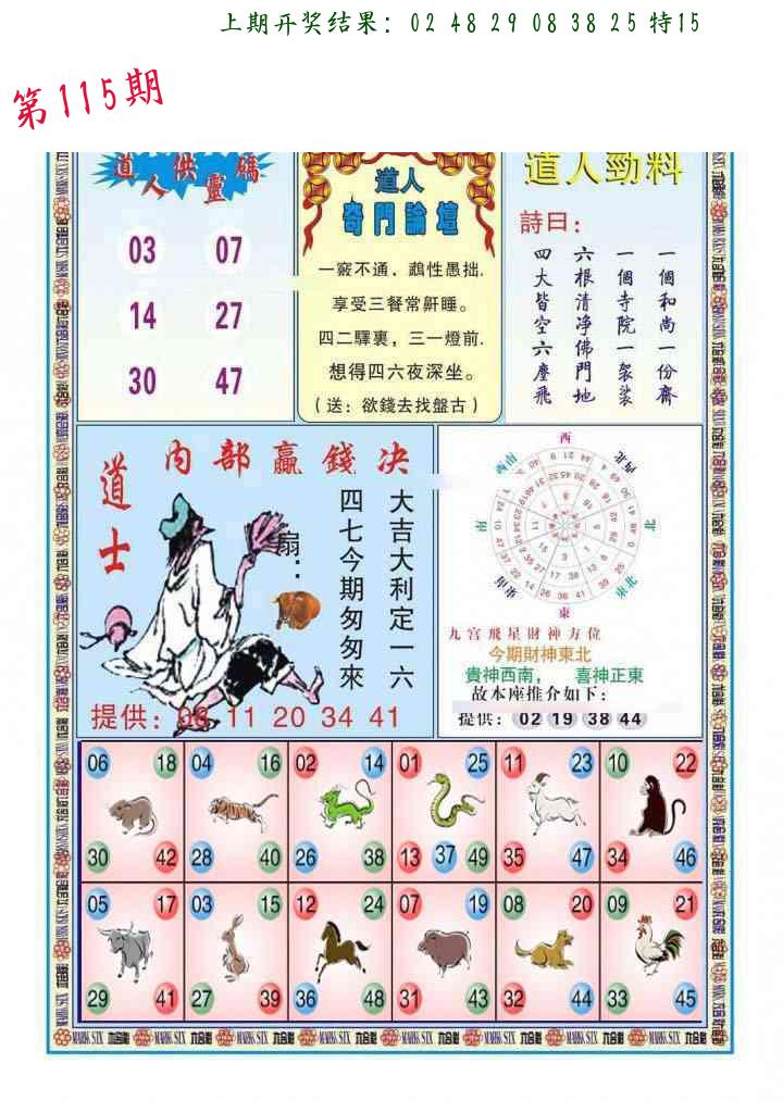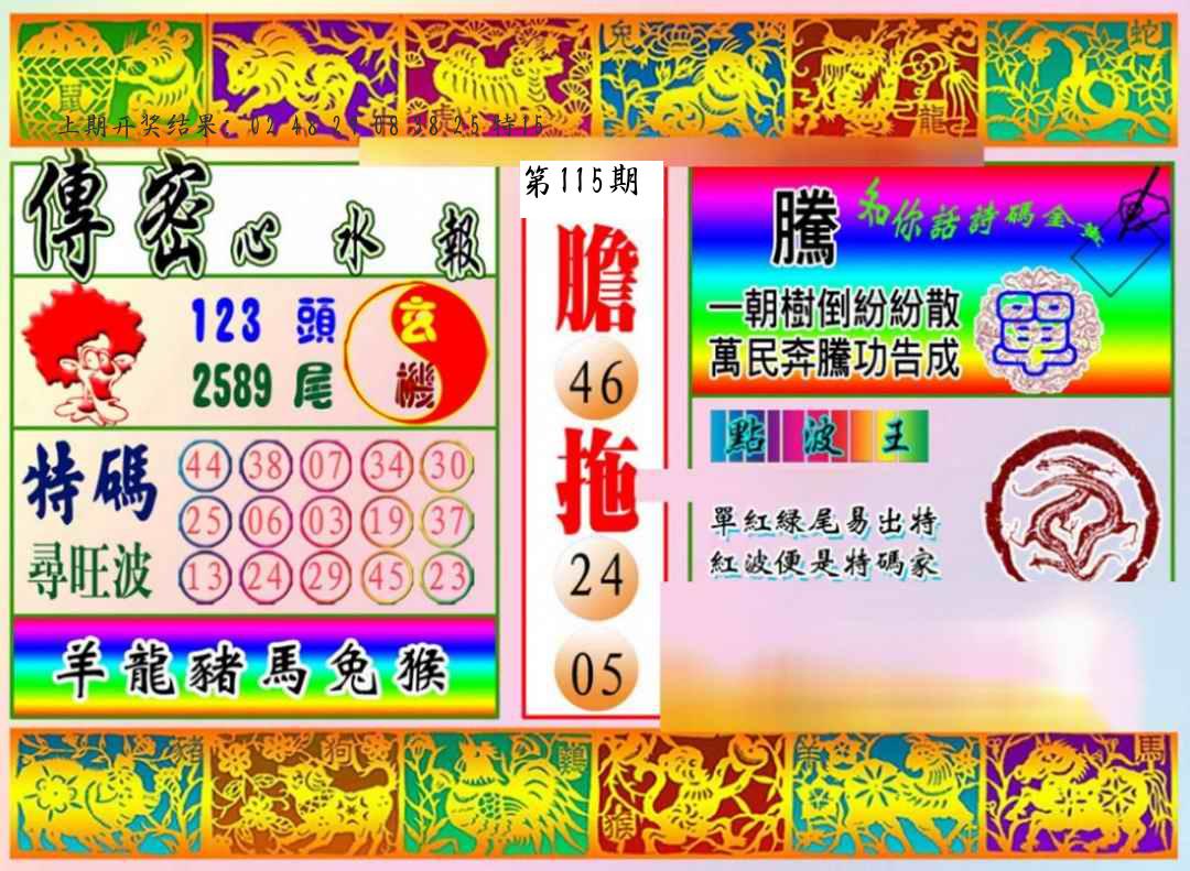 | 1114期:单双四肖八码 开:????? | |