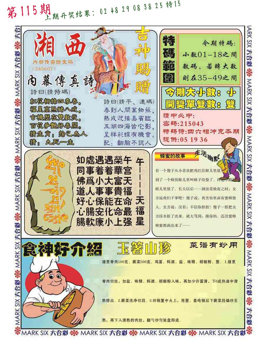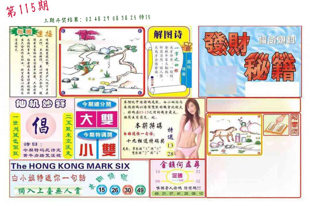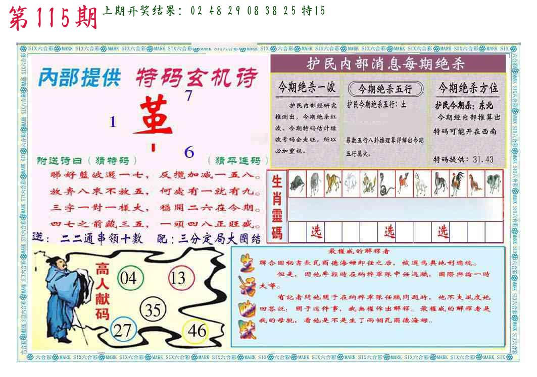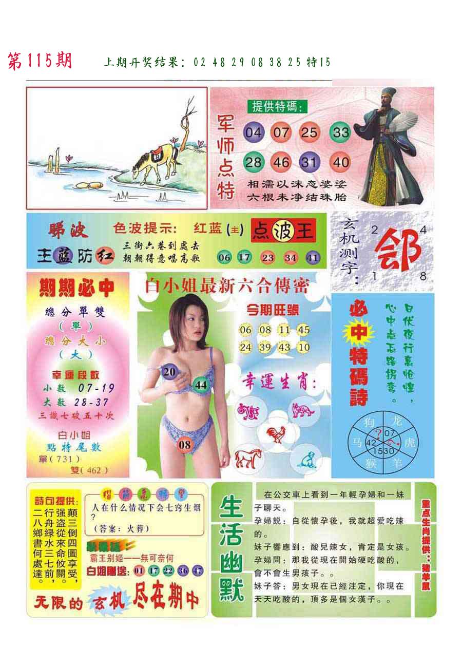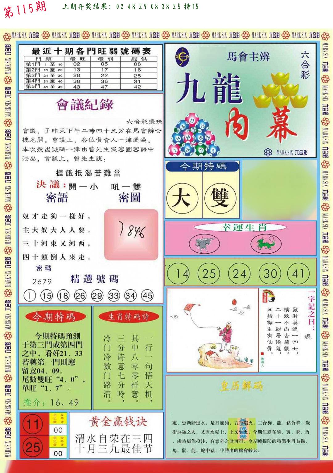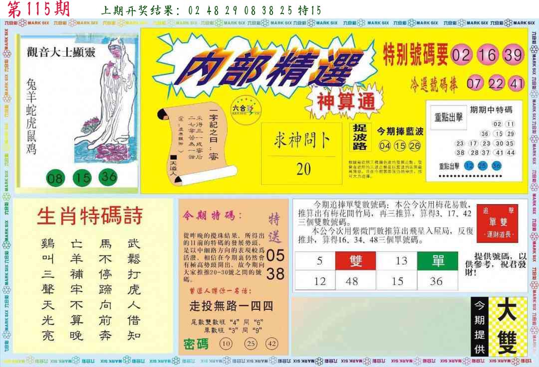 | 1114期:单双四肖八码 开:????? | |