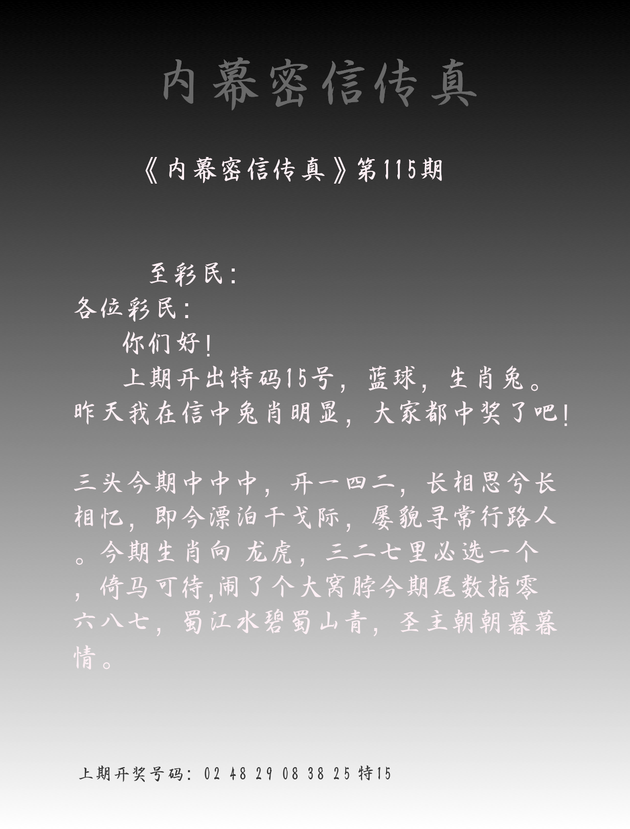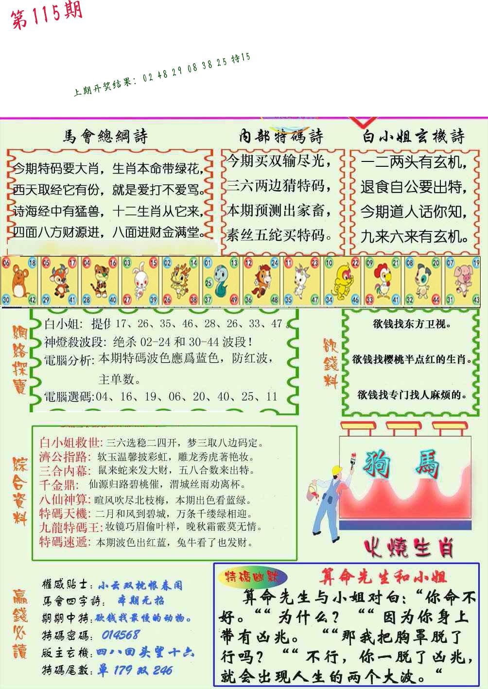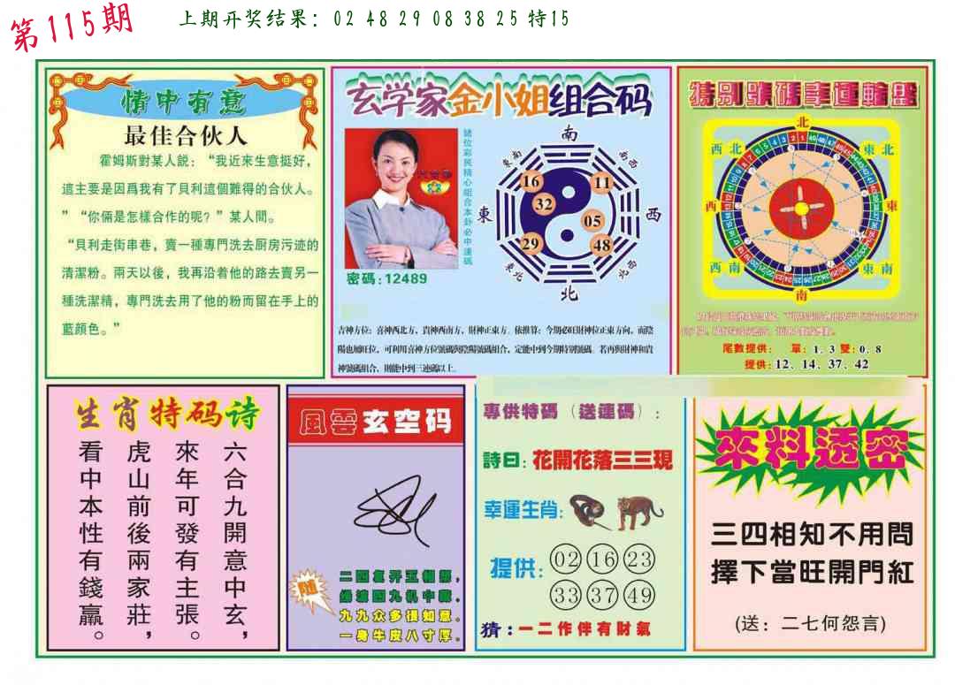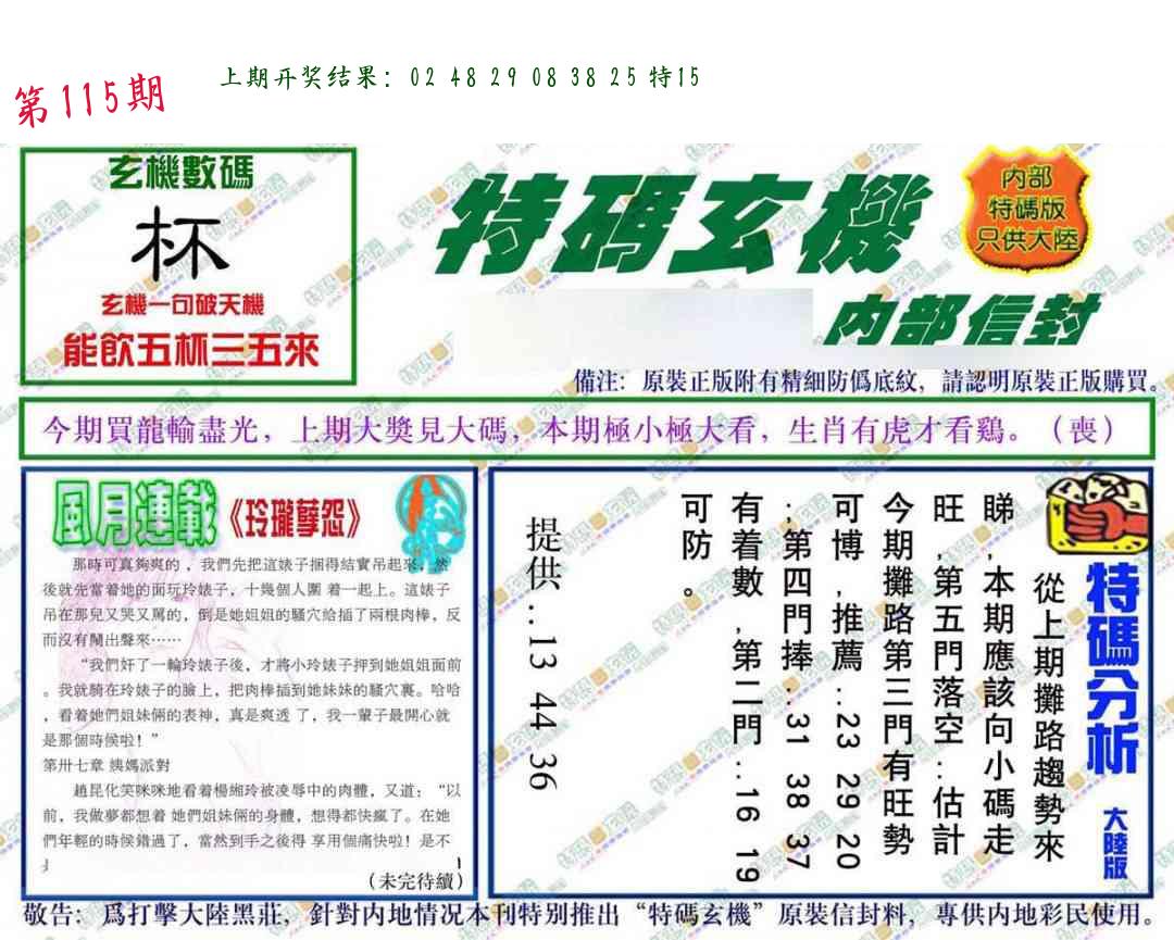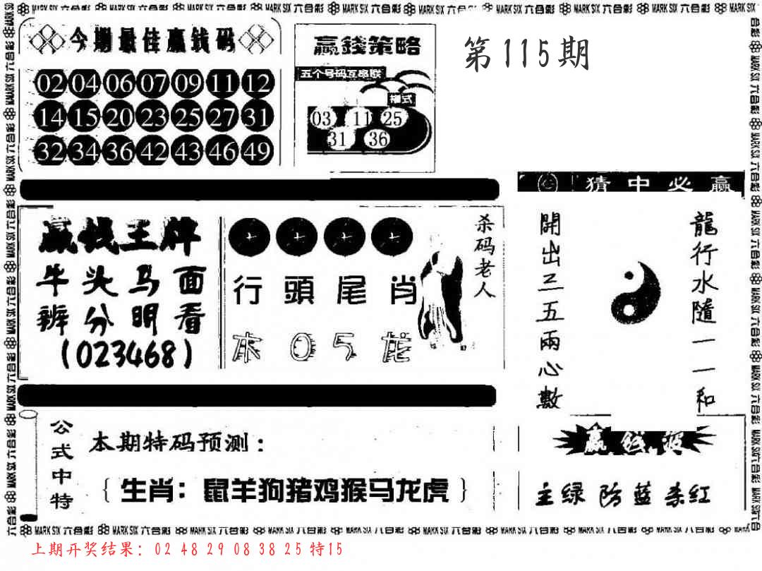 | 1114期:单双四肖八码 开:????? | |