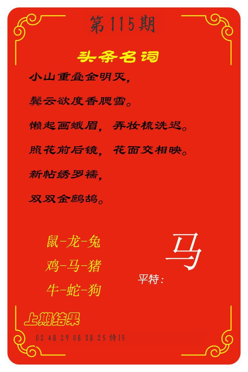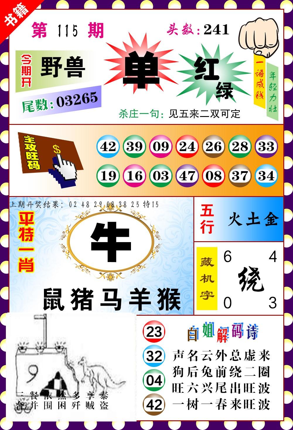 | 三肖 | 羊鸡马 |