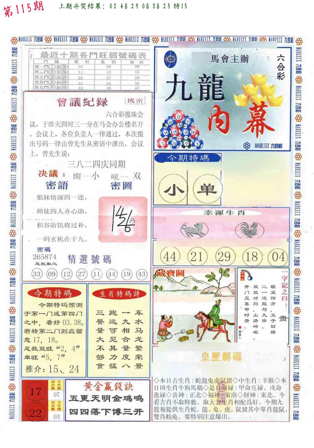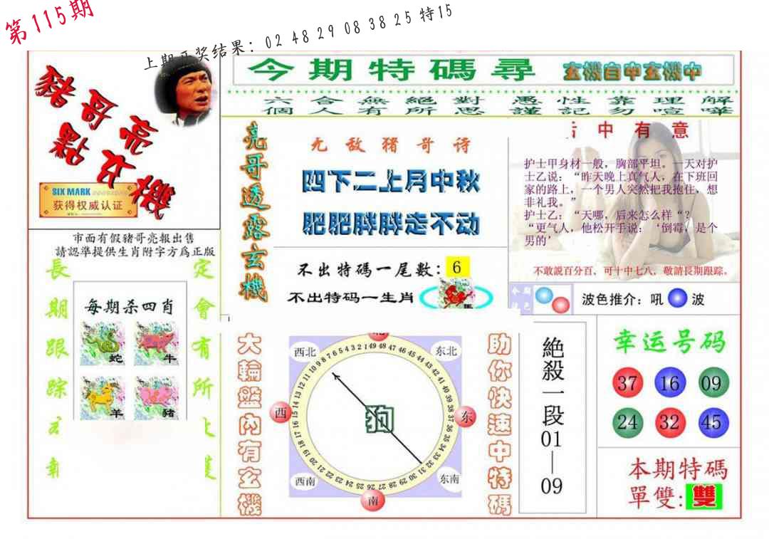 | 1111期:单双四肖八码 开:43猪错 | |