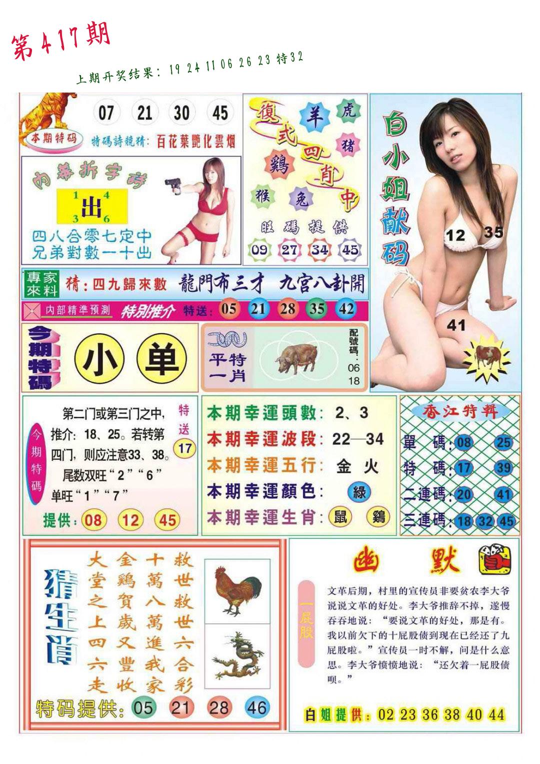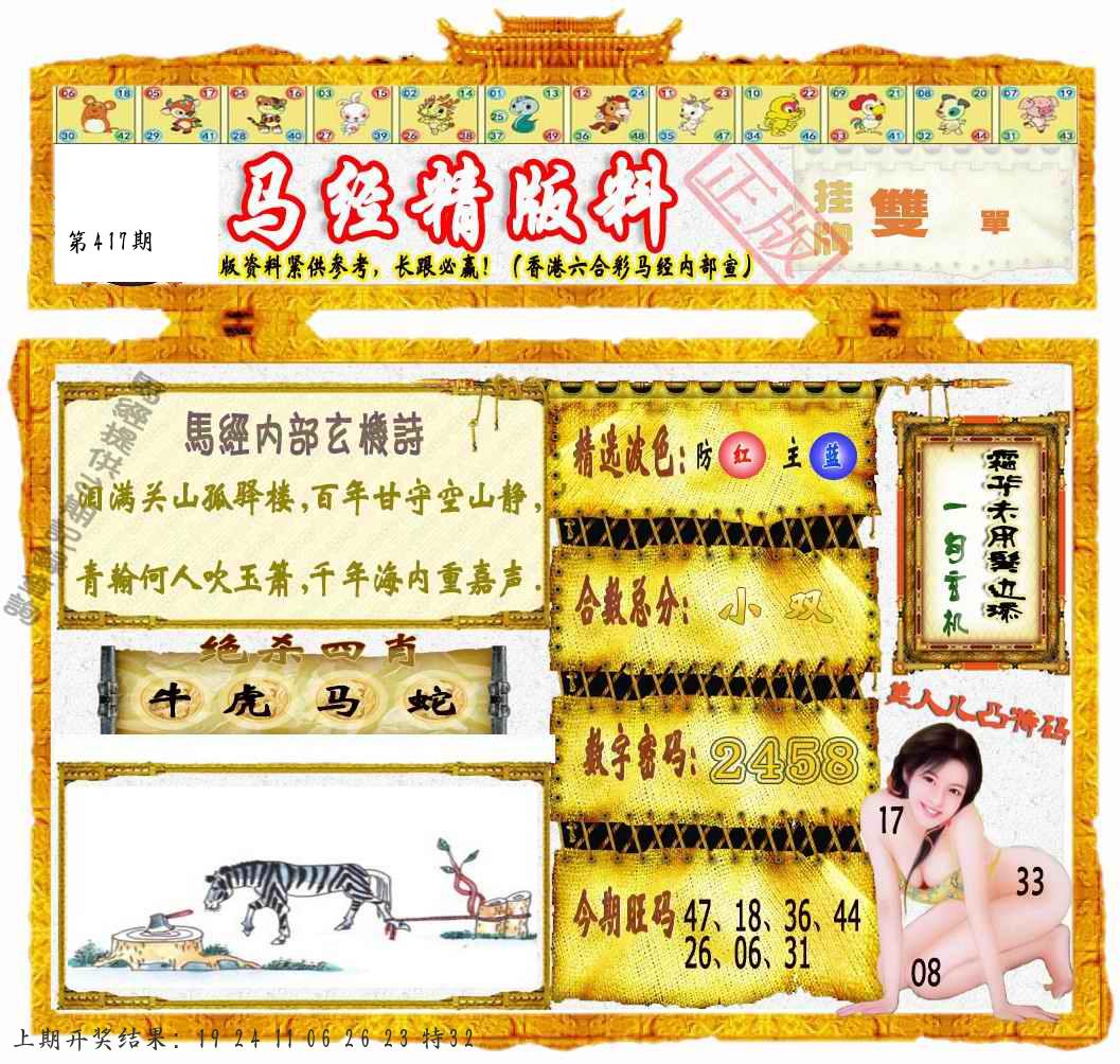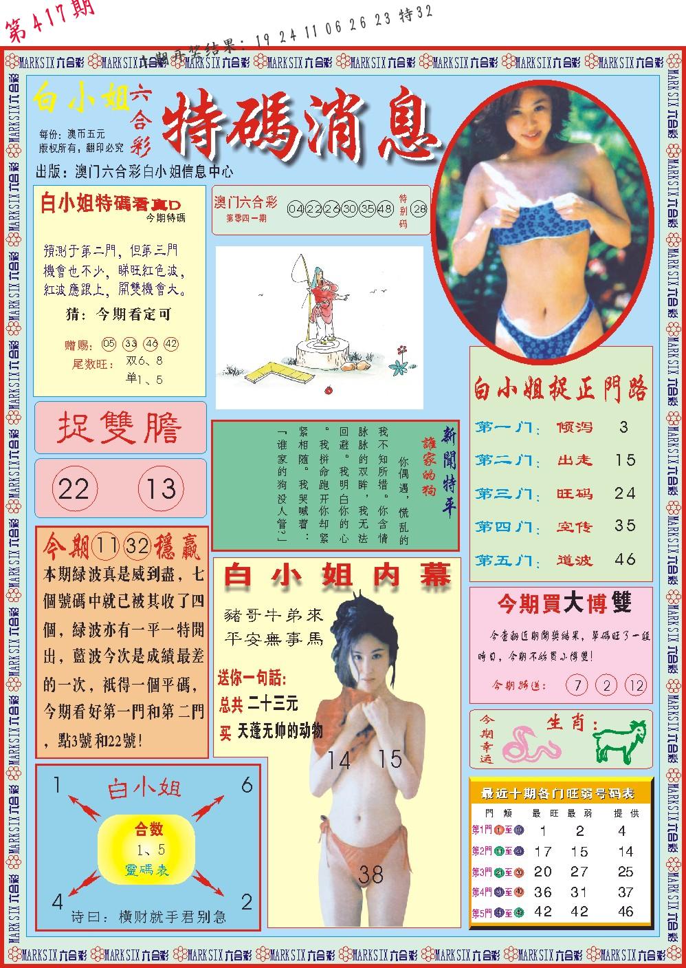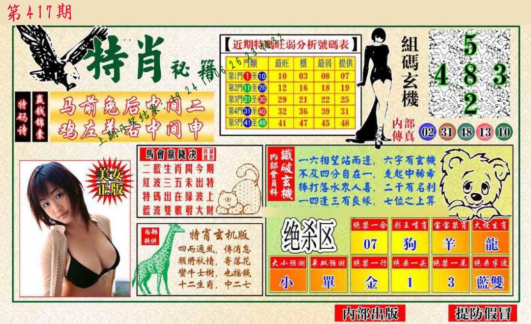 马会内部传真 马会追踪B版 美女数码料