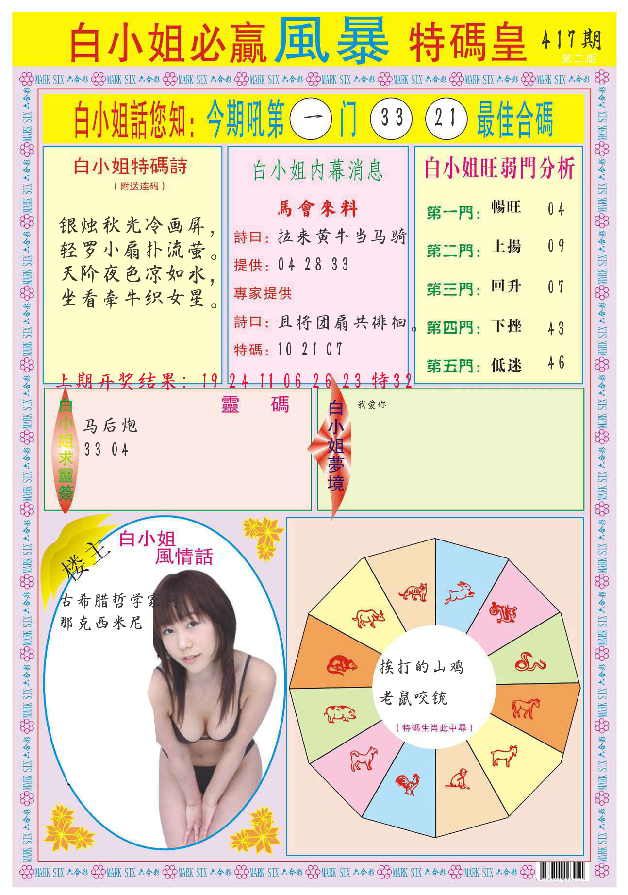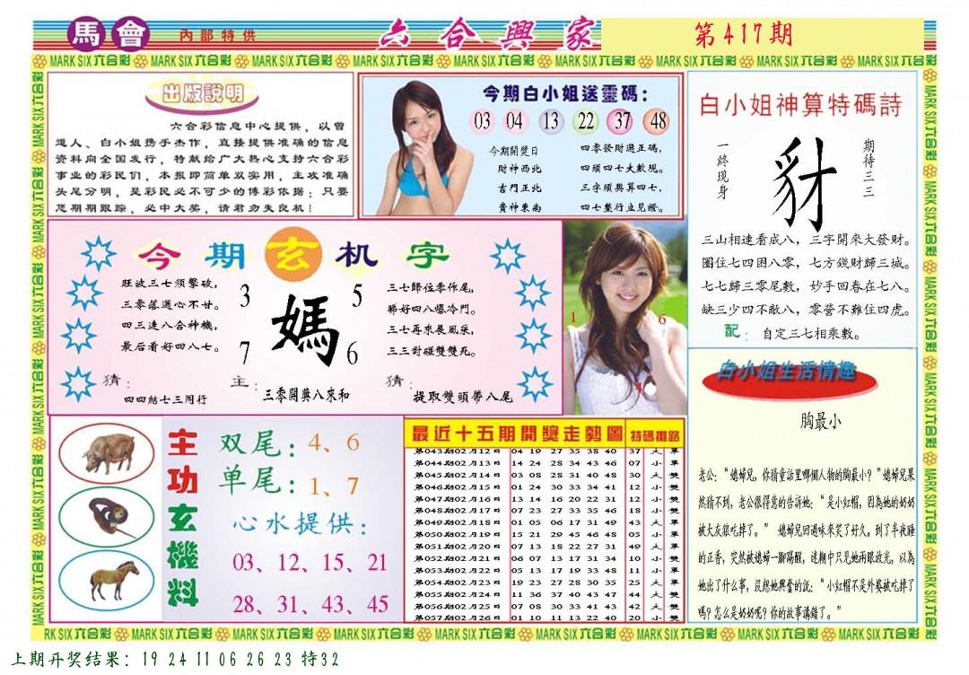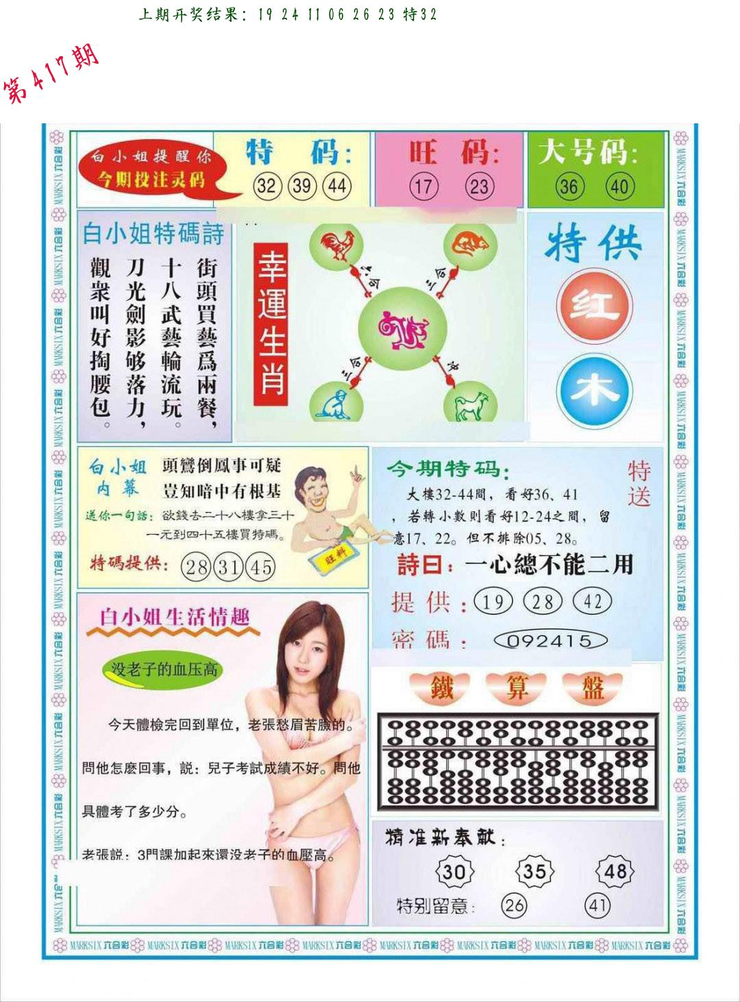 马会内部传真 马会追踪B版 美女数码料