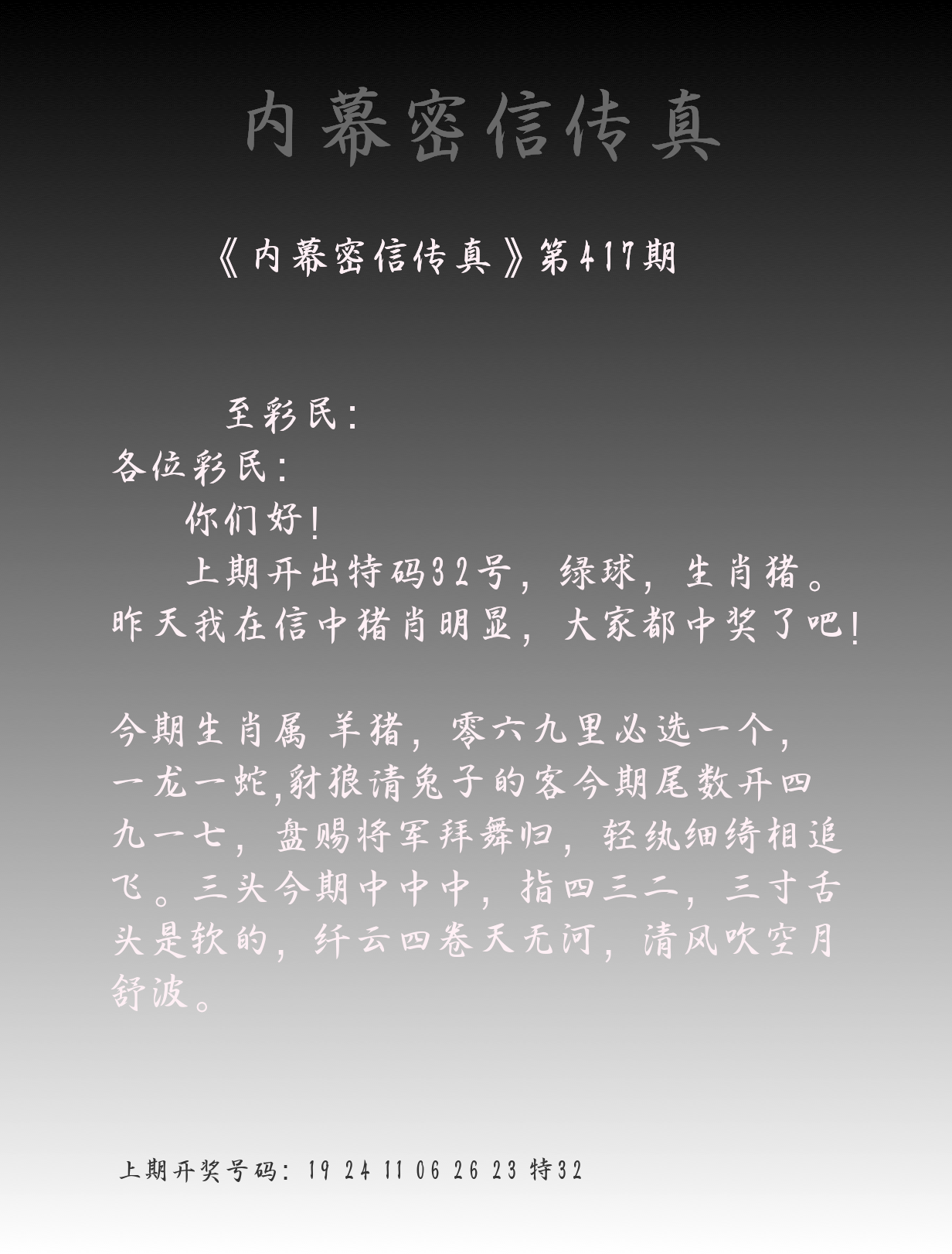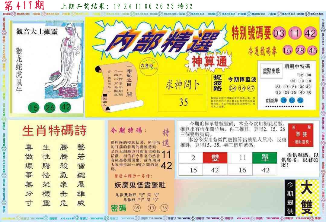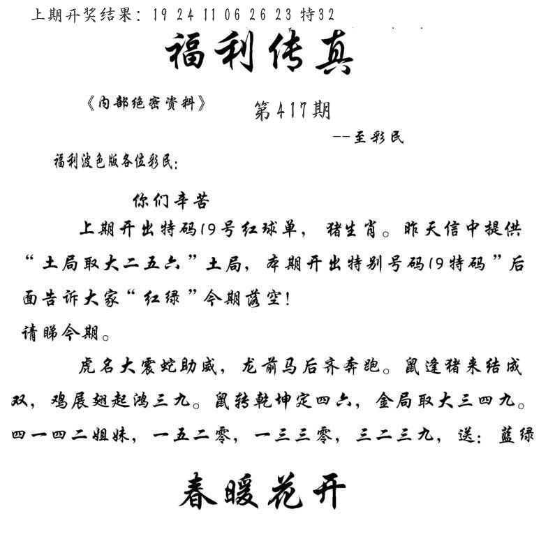 心水内幕图 神机妙算 福利传真
