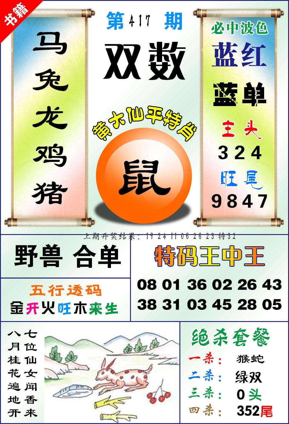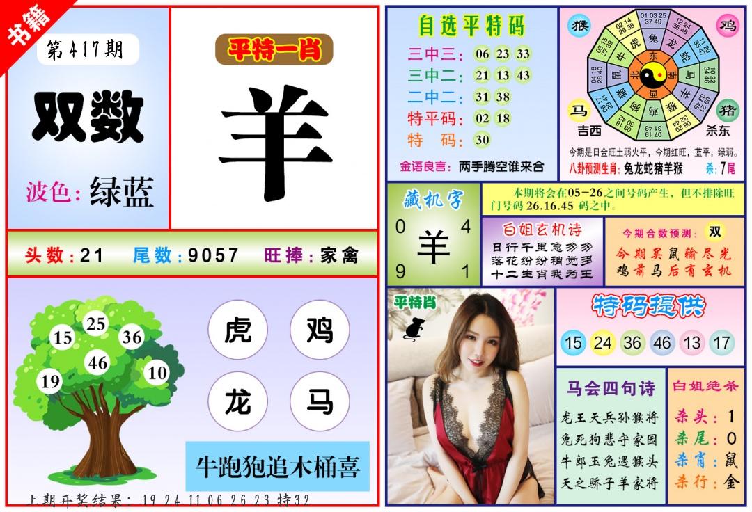 0415期:单双四肖八码 开:24羊对