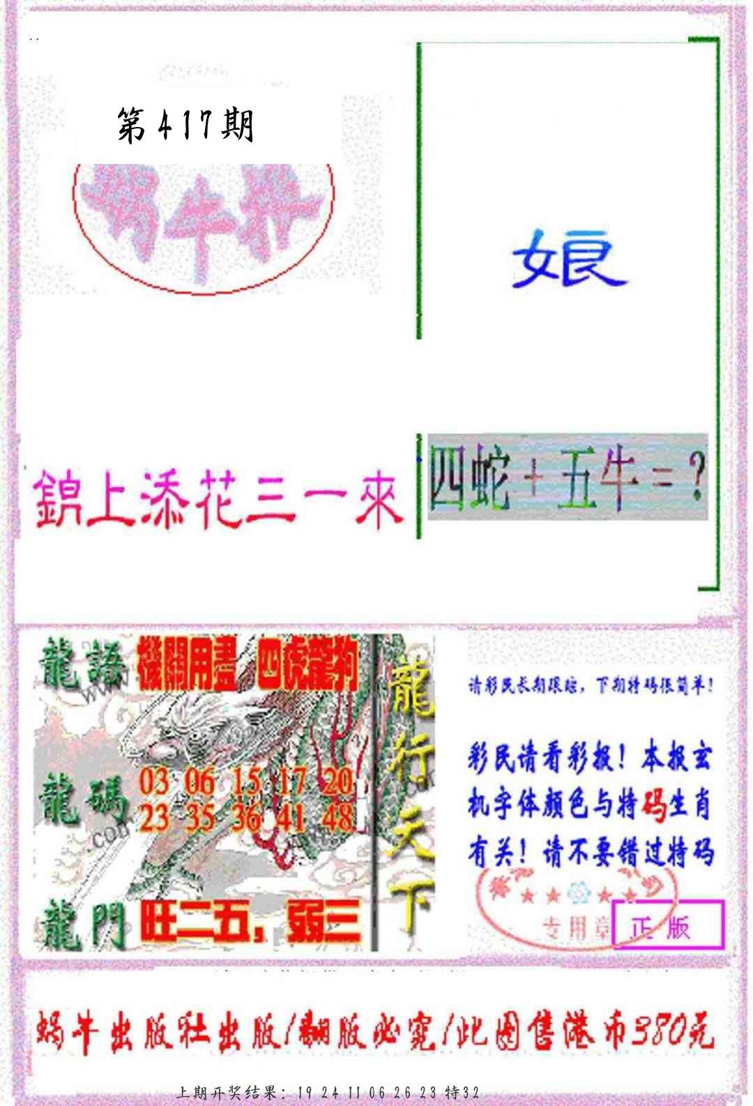 每日宝典图 另版蛇蛋图 猛虎报