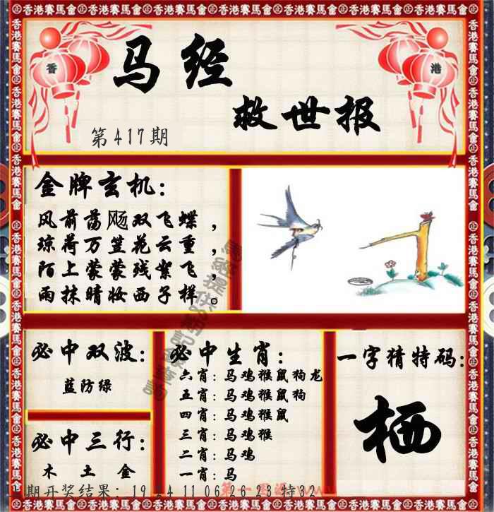 马经救世报2版 马经玄机图 龙头报
