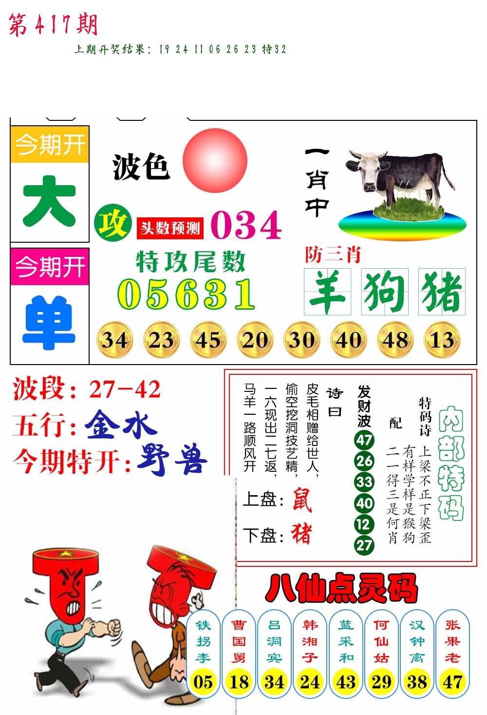 0413期:单双四肖八码 开:18牛错
