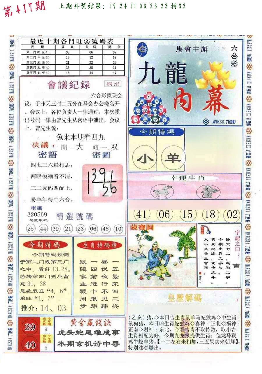 六合名人榜第一版 九龙会议纪要 稳操胜券
