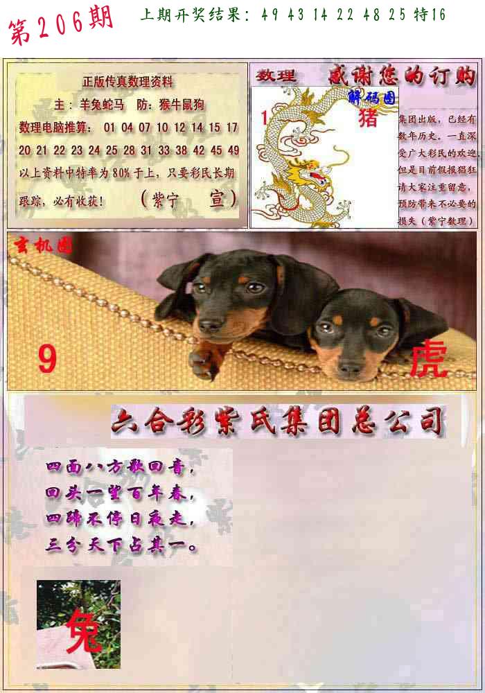 | 1202期:逼哥四尾八码 开20狗对 | |