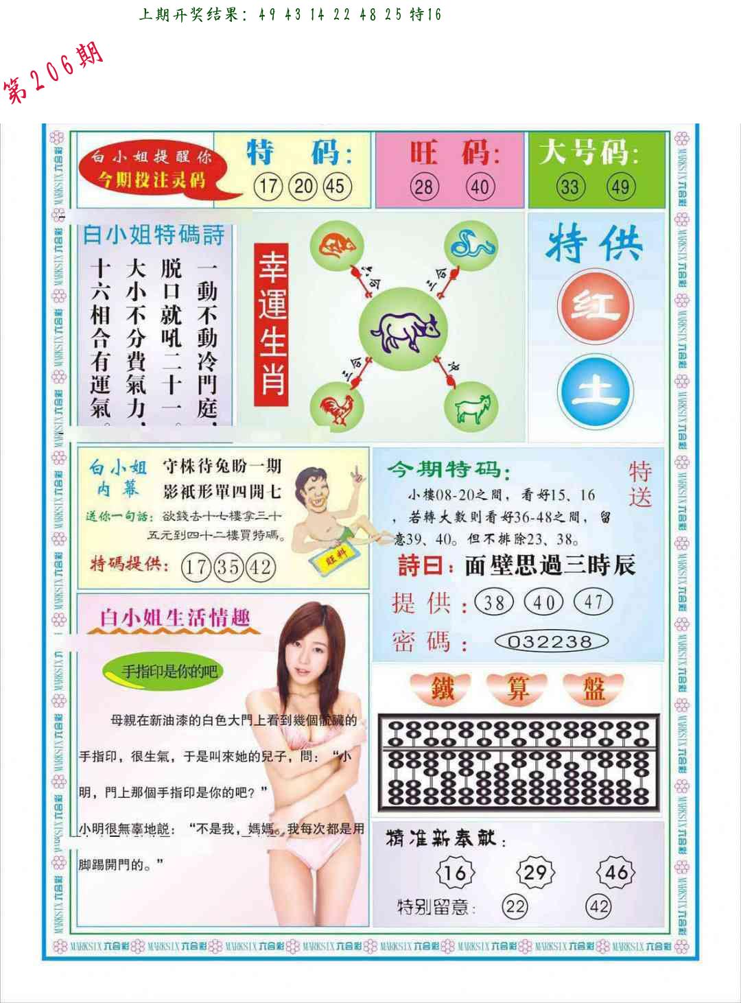 1203期【隔壁老胡18码】开42鼠 48-06-49-18-40-09 |
