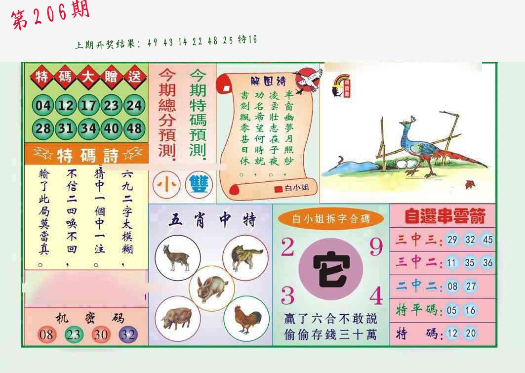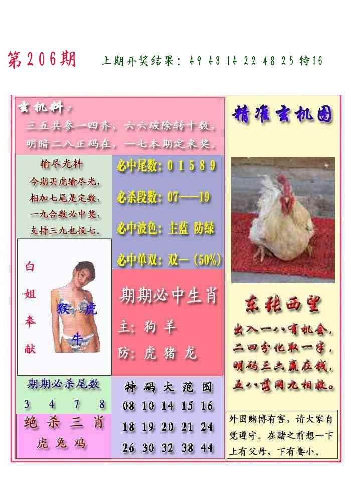 | 1204期:逼哥四尾八码 开03兔错 | |